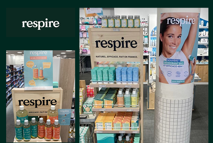 Respire est une marque de soins d’hygiène sains et naturels (déodorant, shampoing, dentifrice…) qui s’engage sur des produits respectueux de la peau et de l’environnement. Pour la production de ses supports de présentation dans les différents points de vente (Monoprix, Sephora, Marionnaud…), Respire sollicite le Groupe Burlat afin de réaliser des meubles en bois imprimés sur-mesure dans le respect de ses valeurs éthiques et éco-responsables.